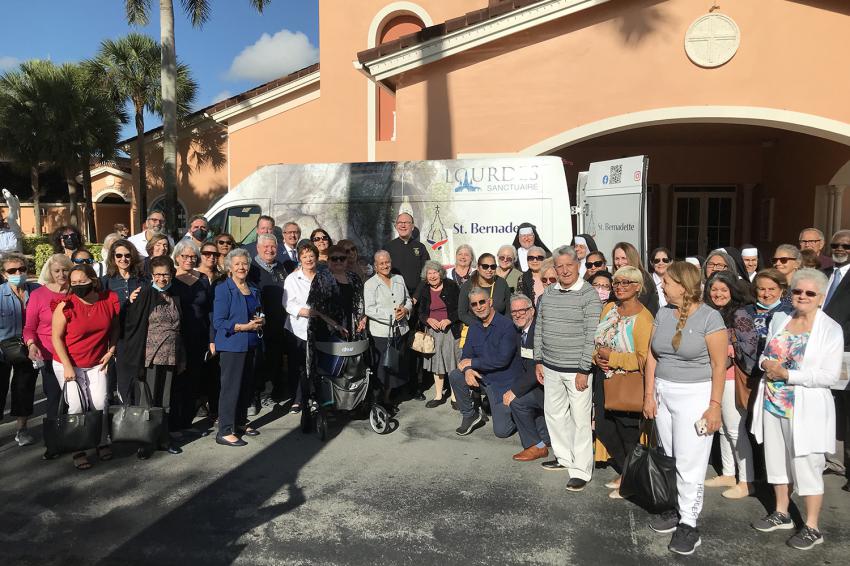 Our Lady of Lourdes Catholic Church, Miami, was packed in the main church and chapel, with standing room only. Mass was simultaneously broadcasted in the Parish Hall as well as in the outside altar. The procession following mass moved from the main church to the adjacent track of Our Lady of Lourdes Catholic School. Many came to experience St. Bernadette and the healing powers - mind, body and spirit - of the waters of Lourdes.