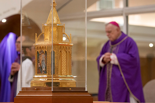St. Bernadette arrived at 3:00 p.m. and was transported onto the main altar of the Church in the beautiful reliquary. Mass was celebrated by Father James Arriola at 7:00 p.m., with the Gesture of the Water following Mass.